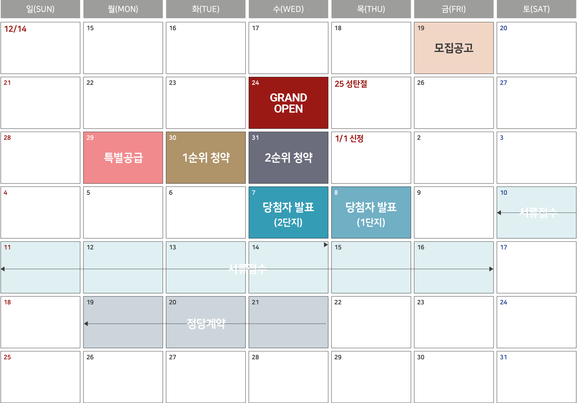 2. 1순위 청약 안내 : 특별공급 12월 29일(월) / 1순위 12월 30일(화) / 2순위 12월 31일(수)