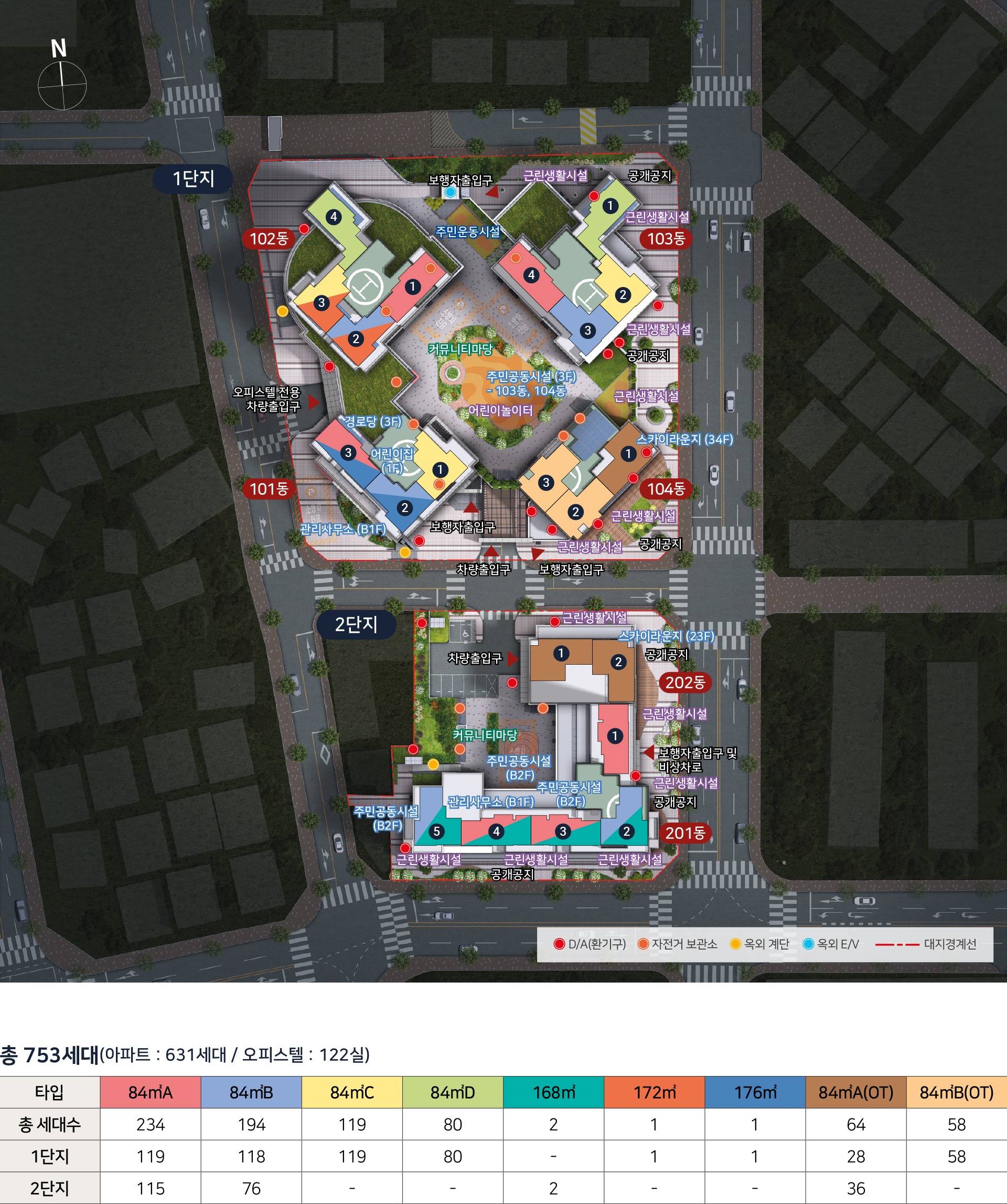 • 규모: 지하 6층 ~ 지상 최고 44층, 2개 단지 총 753세대