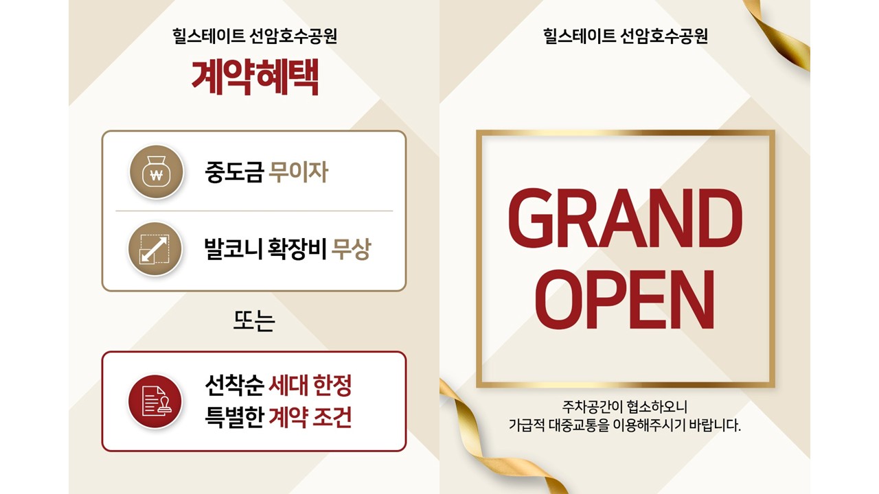• 1차 선점 혜택: 가장 좋은 동·호수와 혜택은 가장 먼저 움직이는 분들의 특권입니다.